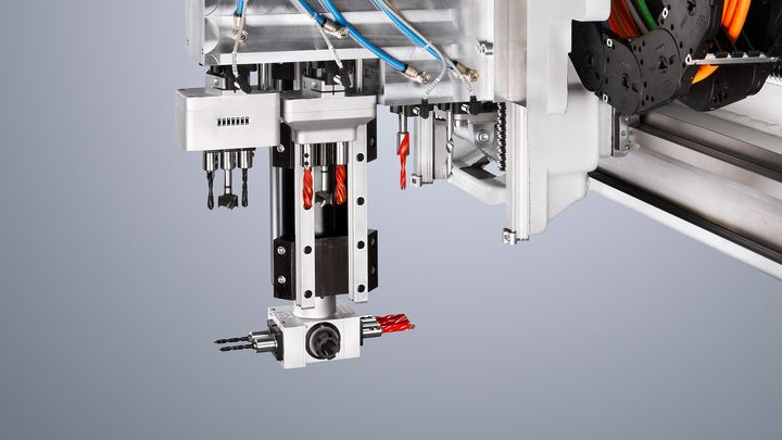 Les têtes de perçage multibroches (MBK) permettent de démultiplier le rendement. Leur utilisation se révèle particulièrement pertinente pour les usinages pour ferrures : trous de poignées, pivots d'angle, compas, perçage de trous de chevilles, préperçages ou perçages de repérage pour éléments de fermeture.