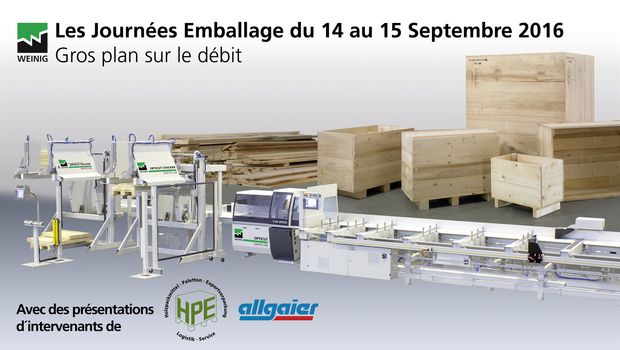 Cette chaîne ne sera en démonstration que lors des journées de l'emballage. Elle fait partie du projet de fabrication entièrement automatique de palettes d'un client de WEINIG DIMTER. Vous pourrez voir en plein travail la partie de l'installation présentée, c'est-à-dire, un dépilage à ventouses, trois tronçonneuses à entraînement continu OptiCut 260, la mécanisation de la transmission des longueurs débitées sur la chaîne de fabrication de palettes ainsi que la commande complète d'installation spécifique au client et le suivi des pièces pour l'alimentation précise de la chaîne de fabrication.
